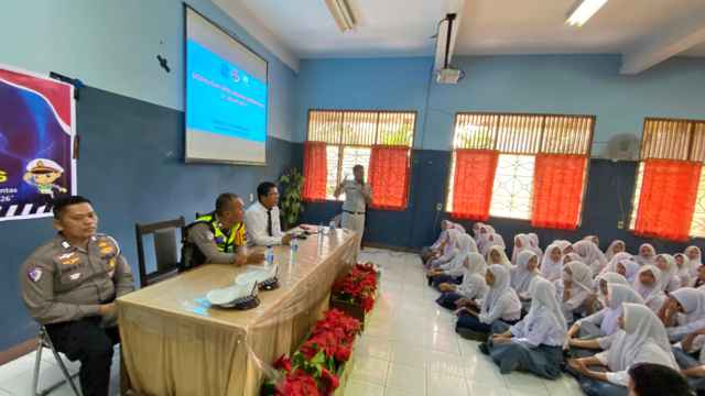 Kegiatan yang berlangsung interaktif ini diikuti dengan antusias oleh para pelajar. Melalui sesi diskusi dan tanya jawab, siswa menunjukkan minat dan kepedulian terhadap pentingnya keselamatan berlalu lintas.